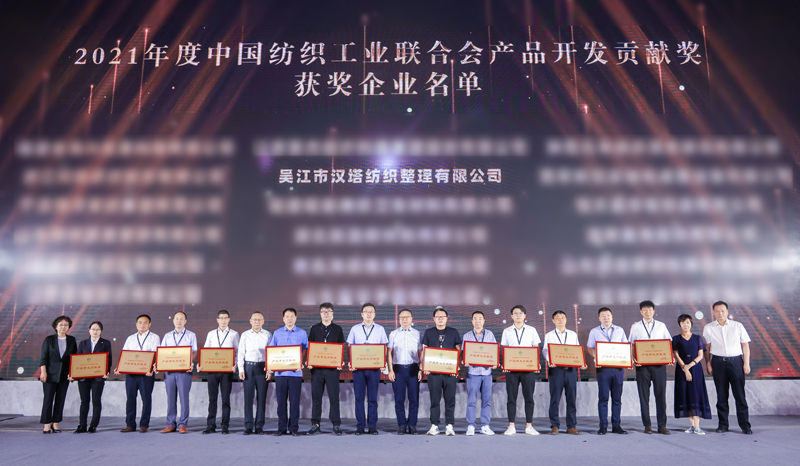 After the qualification review, expert preliminary evaluation and final evaluation of the applying enterprise (unit) by the Jury of China Textile Industry Federation Product Development Contribution Award, it is decided to award the honorary title of "China Textile Industry Federation Product Development Contribution Award" to Wujiang Hanta Textile Finishing Co., Ltd. in 2021.